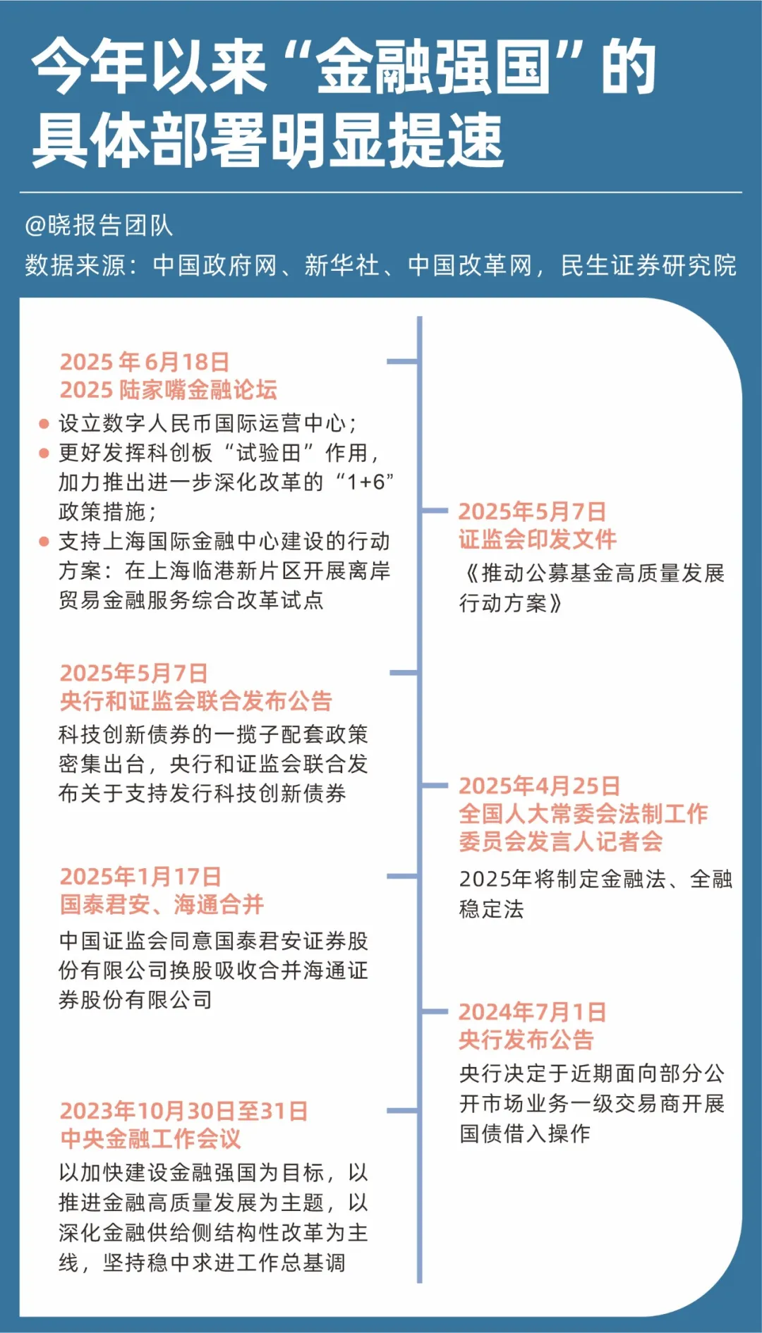 从2023年提出到2025年,“金融强国”的具体部署明显提速。特别是在2025年6月18日,陆家嘴金融论坛提出建设数字人民币国际运营中心;发挥科创板“试验田”作用,支持上海国际金融中心建设方案等,让“金融强国”建设又迈出了一大步。