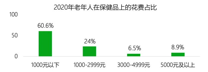 超过80%的老年人没有服用保健品。在购买保健品的老年人中,有超过80%年消费金额在3000元以下;