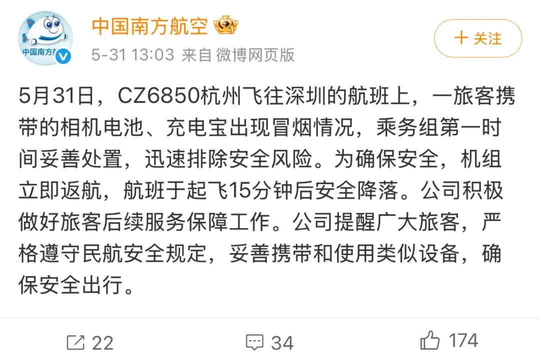 相关人士透露,过去半年,充电宝行业已发生700多起安全事故,其中2025年上半年,旅客携带充电宝在飞机上起火冒烟的事件达15起,较去年同期增长约一倍。
