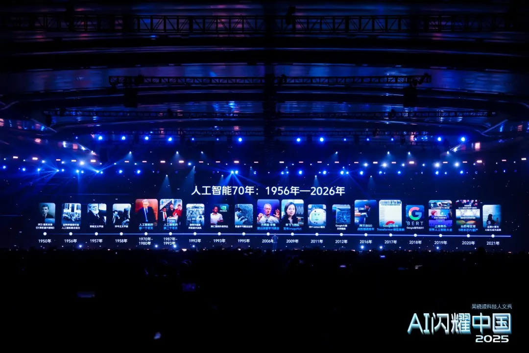 从1956年人工智能概念提出,到明年整整70周年。我们今天晚上举办这样一场“AI闪耀中国”,也是对之前70年所有的探索者的致敬。