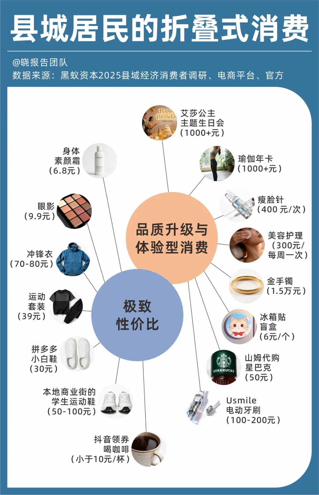 一边是品质升级需求悄然释放,美容个护、主题生日会、珠宝时尚、智能电器成为县城家庭的“必需品”。